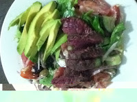 Kangaroo and avo salad with box-o Aussie shiraz.